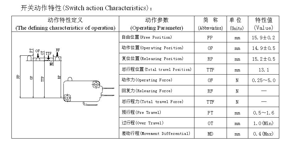 माइक्रो स्विच पैरामीटर (विनिर्देश)