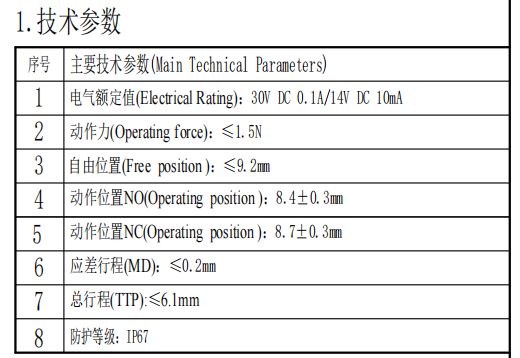 | 1 | विद्युत मूल्यांकन | 10MA 14V DC/0.1A 30VDC | |